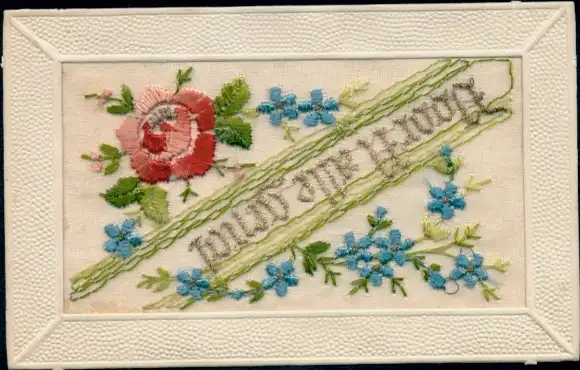 Seidenstick Ak Blumen, Rosen, Vergissmeinnicht