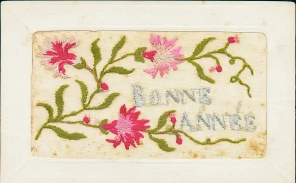 Seidenstick Ak Glückwunsch Neujahr, Rosa Blüten