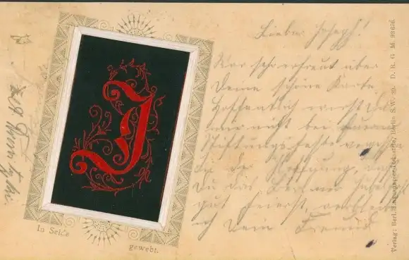 Seidenstick Buchstaben Ak Buchstabe J, in Seide gewebt