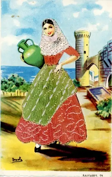 Seidenstick Künstler Ak Frau in spanischer Volkstracht, Wasserkrug