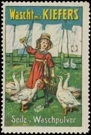 wascht mit Kiefers, Geflügel, Gänse , Größe/Zustand: 5x4 , guter Zustand, Original alte Reklamemarke die seinerzeit für die Werbung benutzt wurde