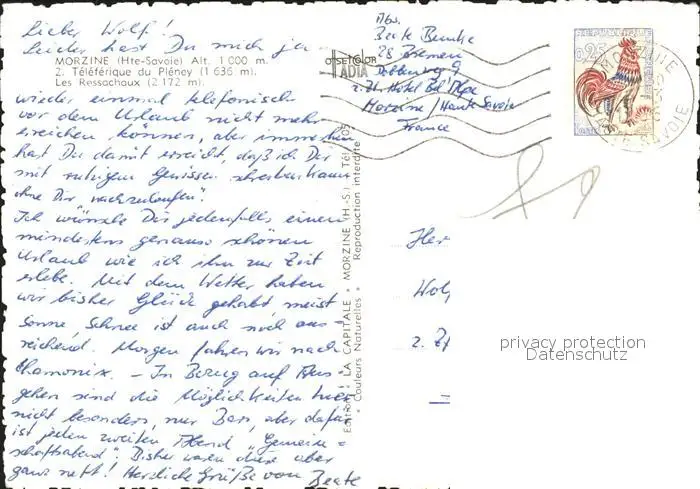 Seilbahn Pleney Morzine Les Ressachaux Bahnen postalisch gelaufen nach 1965 Erhaltung siehe scans Alte Ansichtskarte Postkarte Salvotta