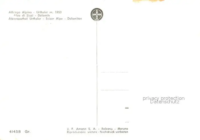 Seiser_Alm_Dolomiten Albergo Alpino Urthaler Alpengasthof postalisch nicht gelaufen nach 1965 Erhaltung siehe scans [FriedD77] Frierer