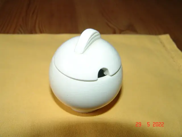Maße: Höhe mit Deckel und Handhabe ca 7,5 cm, Breite ca 8,5 cm