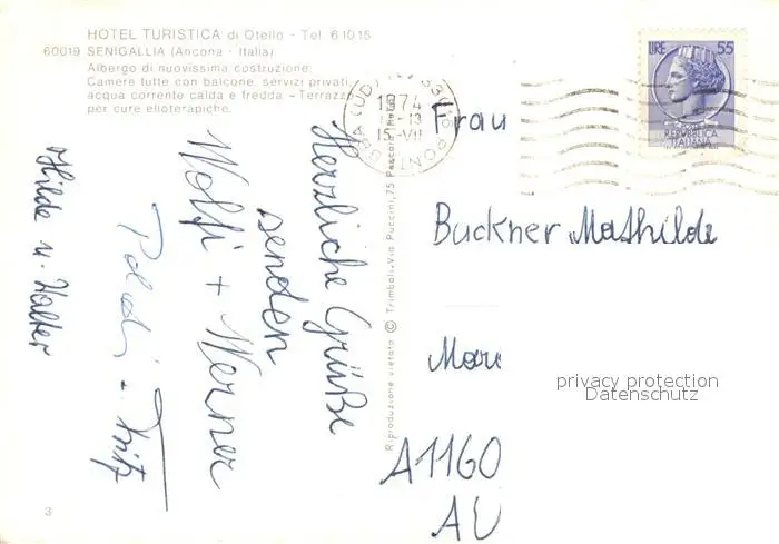 Senigallia Hotel Turistica Senigallia postalisch gelaufen 1974 Erhaltung siehe scans [WerneD78] WernPID7