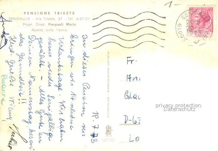 Senigallia Pensione Trieste Senigallia postalisch gelaufen 1973 Erhaltung siehe scans [FriedD77] Frierer