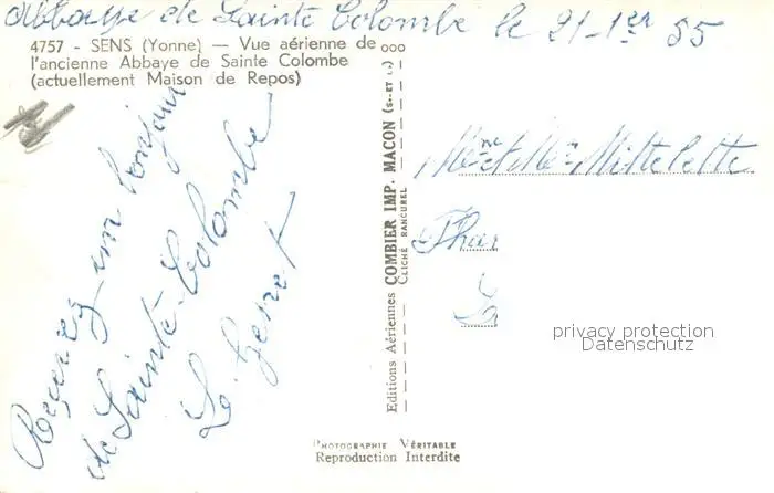 Sens_89 Vue aerienne de l’ancienne Abbaye de Sainte Colombe postalisch nicht gelaufen 1955 Erhaltung siehe scans [WerneD78] WernPID7