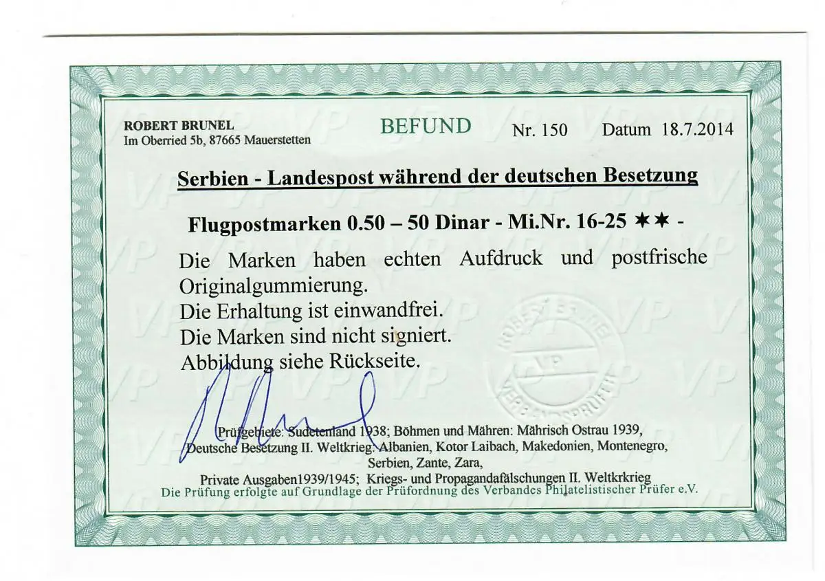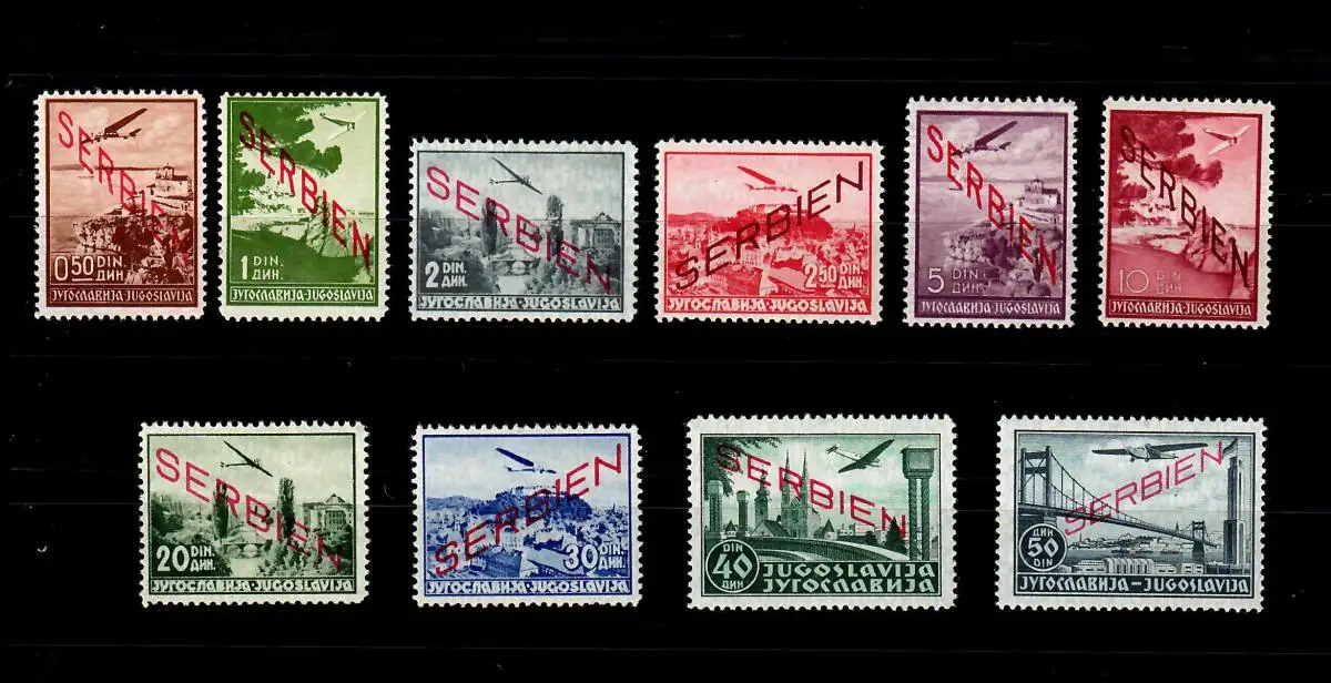 Serbien: Flugpostmarken MiNr. 16-25, postfrisch, **