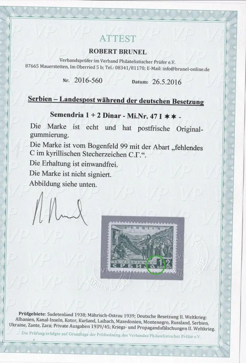 Serbien Semendria MiNr. 47 I, **; Postfrisch