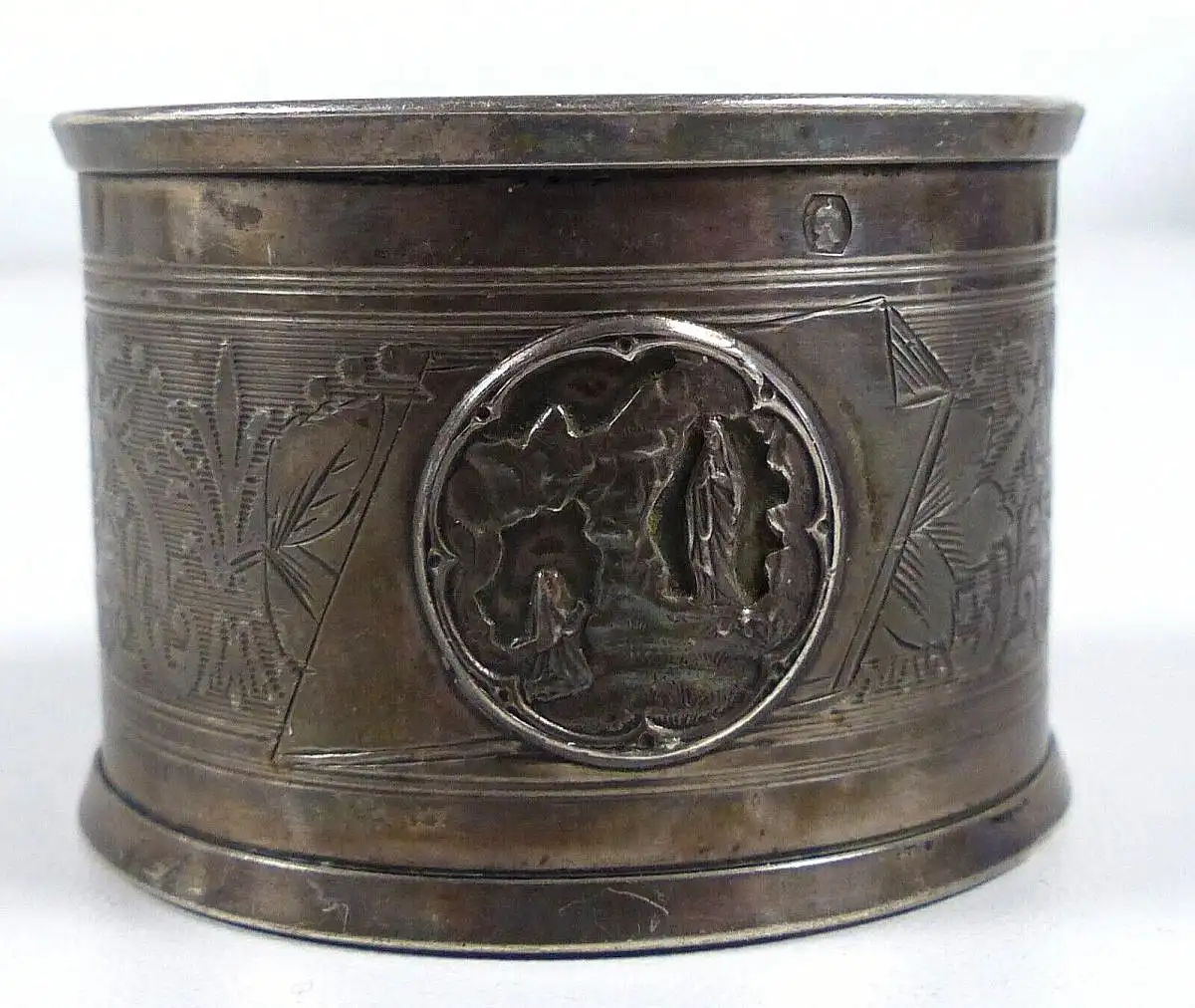 Schauen sie auch gerne in unsere Auktionen und in unseren Shop Serviettenring 800 Silber französisch nach 1830 Minervakopf betende Frau und Maria französisch mit 2 für 800 Silber ohne Monogramm sehr selten Meisterpunze nicht erkennbar Größe ca. 5,14 cm, Höhe 3,53 cm Gewicht ca. 22 Gramm in guter gebrauchter Erhaltung, nicht gereinigt Die Fotos sind Bestandteil des Angebots. Auktionbedingungen über Zahlung und Versand: Bezahlung fällig nach Auktionsende. Sie werden innerhalb von 24 Stunden nach Auktionsende von uns über ebay automatisch angeschrieben. Unser Unternehmen nimmt an dem Befreiungssystem gem. § 6 Abs. 3 (ab 01.01.2009 § 6 Abs. 5) VerpackV teil, wir haben einen FREISTELLUNGSVERTRAG mit der Landbell AG geschlossen. Bitte beachten Sie auch meine anderen Auktionen! Antikhandel Wilfried Boschan Steuer ID DE 167790774 Mehrwertsteuerhinweis: Unsere Artikel unterliegen der Differenzbesteuerung, nach §25a UStG Bei den angebotenen Artikeln handelt es sich um gebrauchte Ware, ein gewisses Maß an Alterungs- und Gebrauchsspuren ist immer vorhanden. Wir geben uns die größte Mühe alles genauestens zu beschreiben, aber wir sind nur Menschen und Menschen machen manchmal Fehler.