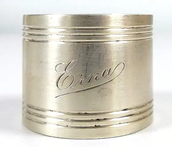 Schauen sie auch gerne in unsere Auktionen und in unseren Shop Serviettenring aus 800 Silber mit Gravur Erna Größe ca. 4,5 cm, Höhe 3,52 cm Gewicht ca. 40,72 Gramm schöner Zustand, sehr massiv, siehe Fotos Die Fotos sind Bestandteil des Angebots. Auktionbedingungen über Zahlung und Versand: Bezahlung fällig nach Auktionsende. Sie werden innerhalb von 24 Stunden nach Auktionsende von uns über ebay automatisch angeschrieben. Unser Unternehmen nimmt an dem Befreiungssystem gem. § 6 Abs. 3 (ab 01.01.2009 § 6 Abs. 5) VerpackV teil, wir haben einen FREISTELLUNGSVERTRAG mit der Landbell AG geschlossen. Bitte beachten Sie auch meine anderen Auktionen! Antikhandel Wilfried Boschan Steuer ID DE 167790774 Mehrwertsteuerhinweis: Unsere Artikel unterliegen der Differenzbesteuerung, nach §25a UStG