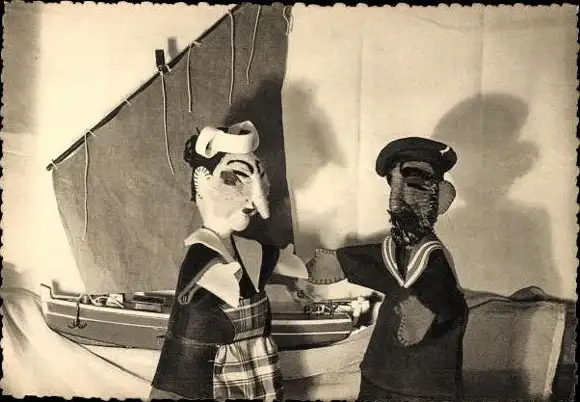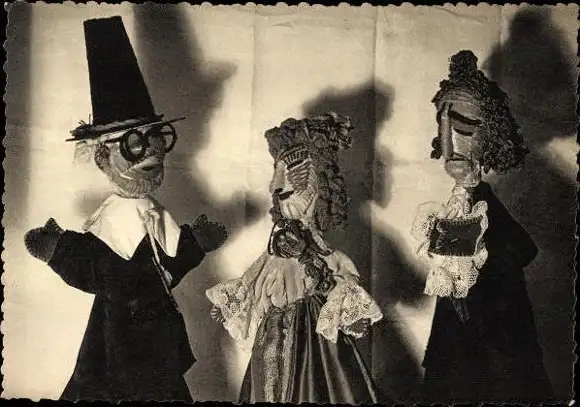 Set von 11 AK im Umschlag Marionetten Geo Condé Theater