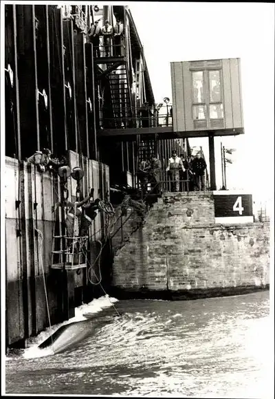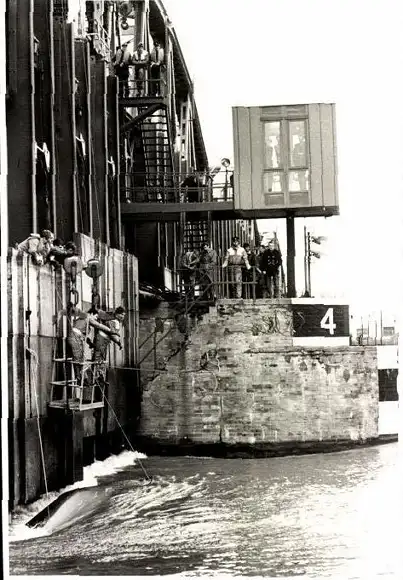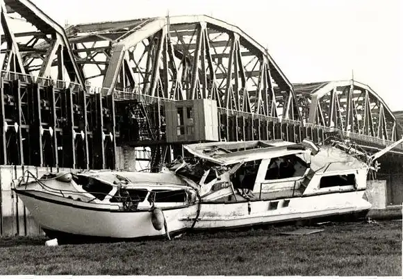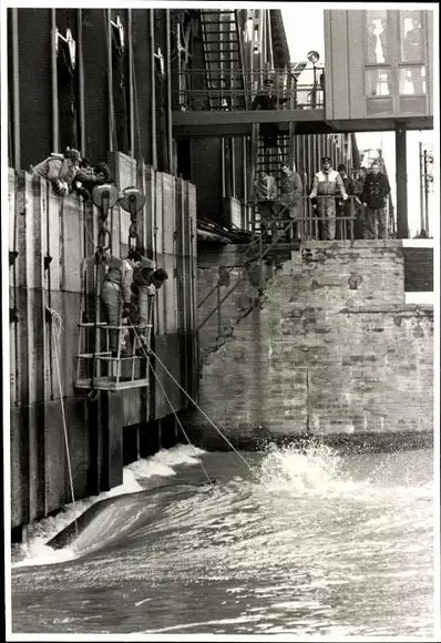 Set von 12 Fotos Plauer Brücke Wrack Schiffe, Unfall, Polizei, Feuerwehr