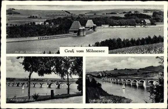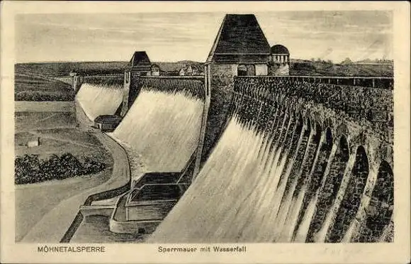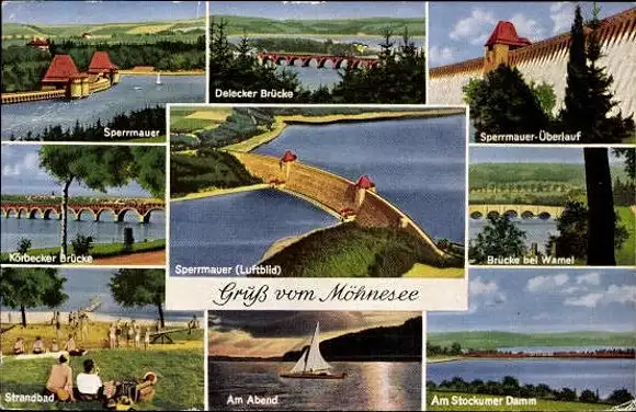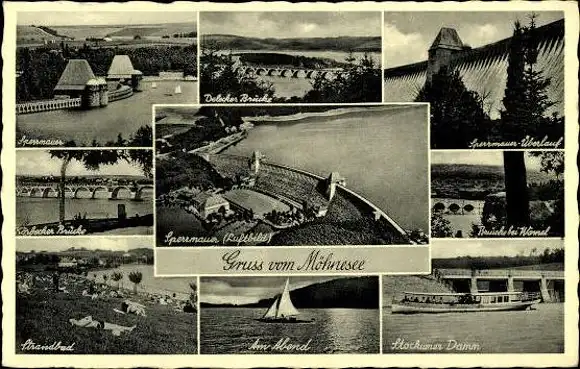 Set von 14 AK Möhnesee, Sperrmauer Überlauf