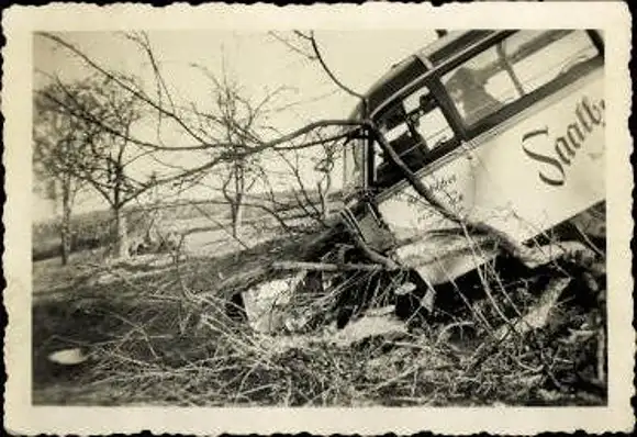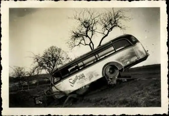 Set von 2 Fotos Unfall Reisebus Mercedes