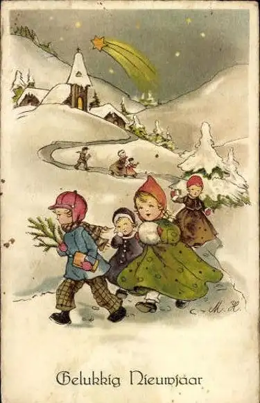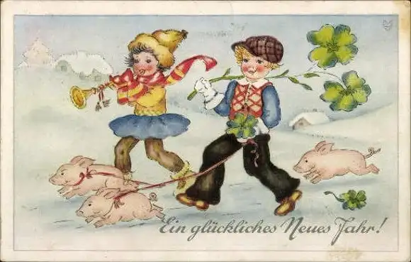 Set von 56 AK Neujahr, diverse Ansichten