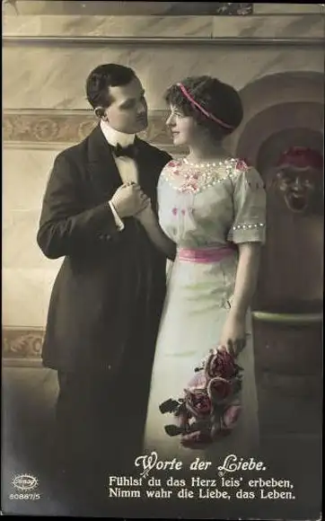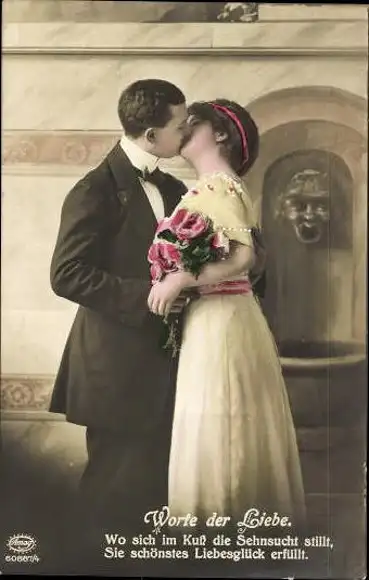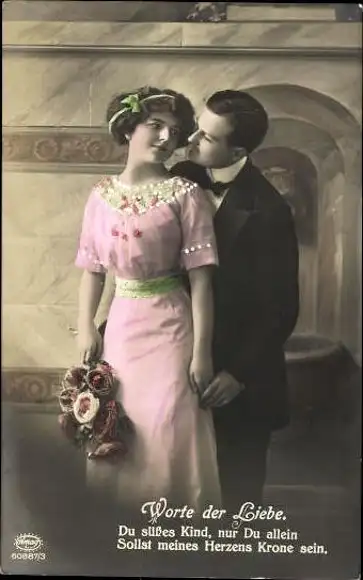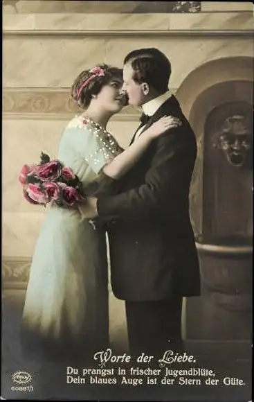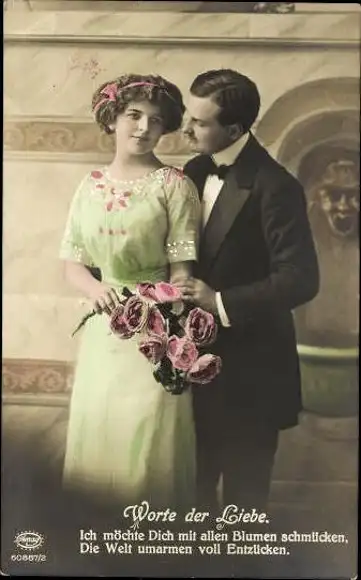 Set von 6 AK Liebespaar mit Blumenstrauß
