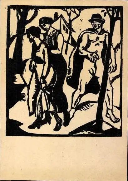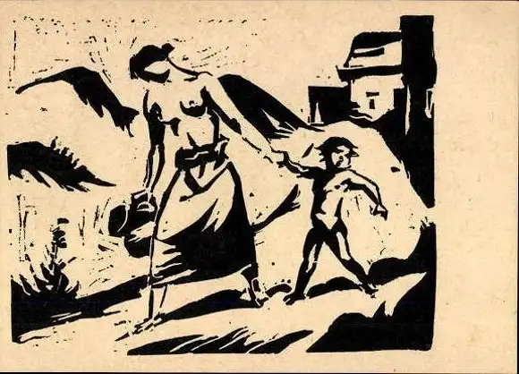 Set von 8 Holzschnitte von Franz Reinhardt, Rau-Kunstkarten-Serie 1