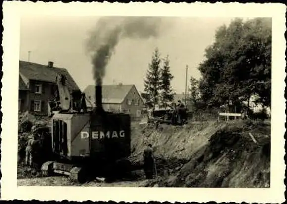 Set von 9 Fotos Dampfdrekran DEMAG