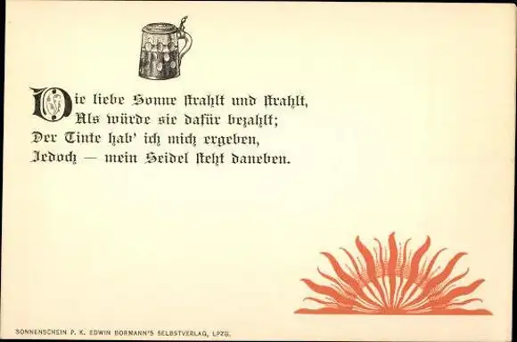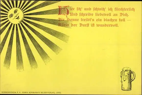 Set von Ansichtskarten im Umschlag, Sonnenschein mit humoristischen Sprüchen