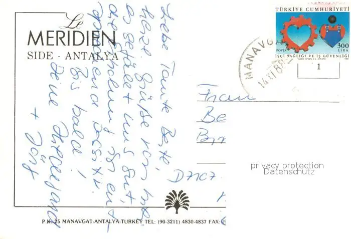 Side_Antalya Le Meridien Side Antalya postalisch gelaufen 1988 Erhaltung siehe scans [WerneD78] WernPID7