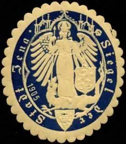 dunkelblau, hellgelb, geprägt, Größe/Zustand: 4x4 , guter Zustand, Original Verschluss-Siegelmarke aus Papier welche früher von Behörden, Firmen etc. zum Versiegeln der Briefe benutzt wurden