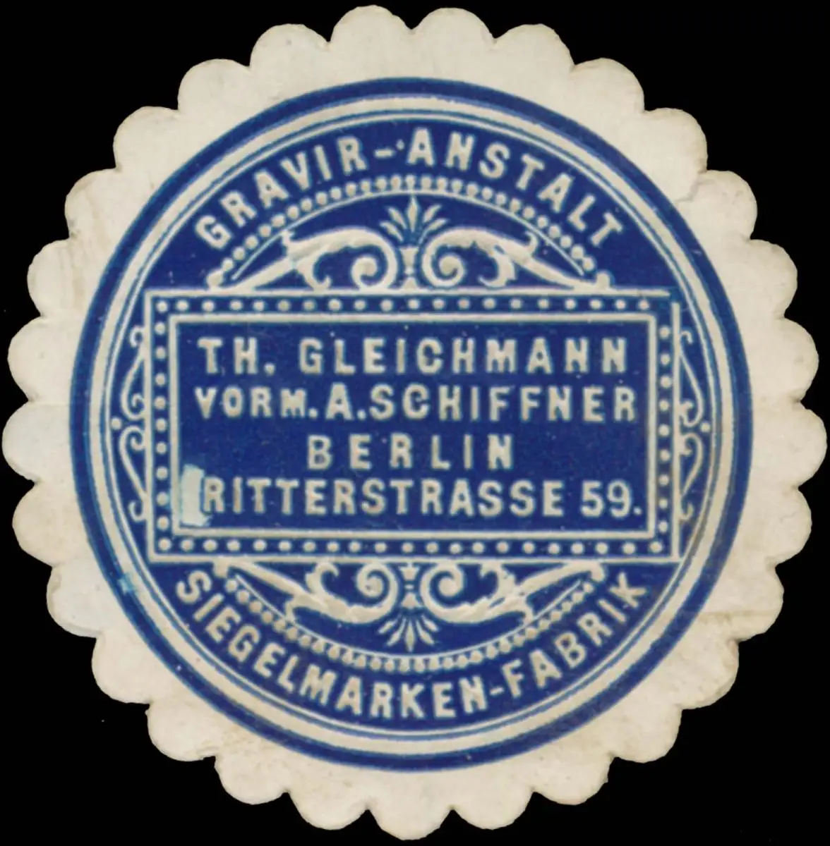Gravir-Anstalt, vormals A. Schiffner, Ritterstraße 59, Größe/Zustand: 4 , leicht beschädigt, Original alte Reklamemarke die seinerzeit für die Werbung benutzt wurde