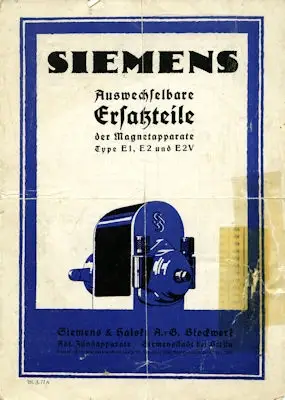 Siemens Magnetapparate Ersatzteilliste 1920er Jahre
