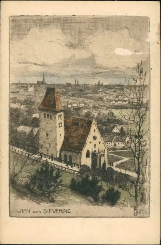 Name: Künstlerkarte Kirche Sievering nach Orignal-Radierung Pollak