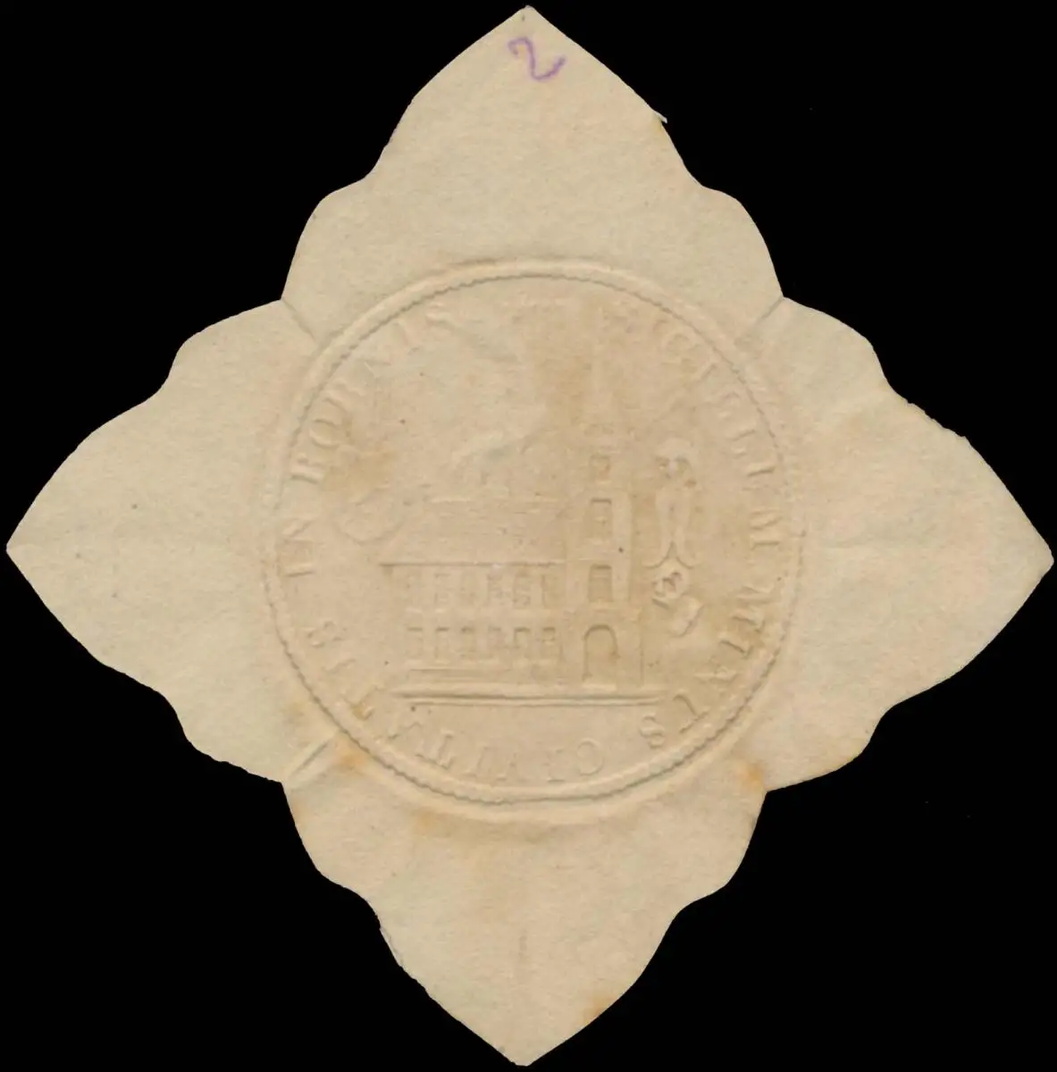 Rittergut Bornis bei Oschatz, Größe/Zustand: 5x5 , leicht fleckig, Original Verschluss-Siegelmarke aus Papier welche früher von Behörden, Firmen etc. zum Versiegeln der Briefe benutzt wurden