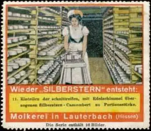 Wie der Silberstern entsteht, Bild 11, Käse, Größe/Zustand: 6x6 , guter Zustand, Original alte Reklamemarke die seinerzeit für die Werbung benutzt wurde