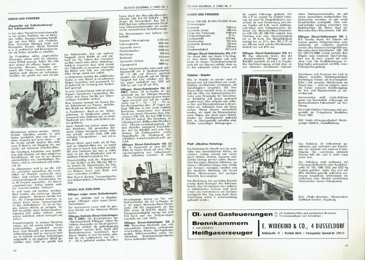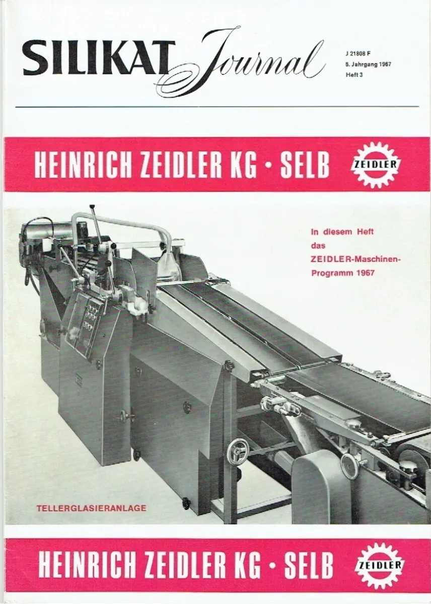 guter Zustand, geringe Gebrauchs- und Alterungsspuren: eine Seite fast lose - Vorderseite des Registers mit kleinen Blessuren an den Rändern, Ein umfangreiches Keramikmaschinen-Programm für die Feinkeramik Bericht aus der Maschinenfabrik Heinrich Zeidler KG, Selb - Das Museum für Glas und Bijouterie in Jablonec Professor Karl Schollmayer - Brenntechnik - Feuerfeste Stoffe im Ofenbau und Hüttenwesen Ein Tagungsbericht (Januar 1966 Essen) - 9. Internationales Feuerfest-Kolloqium in Aachen 25. und 26. Oktober 1966 - Schleiftechnik - Norton-Schleifscheiben - Diamant-Schleifbänder für die Industrie Deutsche Norton-Gesellschaft mbH, Wesseling - Maschinen - Moderne Aufbereitungs- und Gemengeanlagen in der Glasindustrie Carl Schenck, Maschinenfabrik GmbH, Darmstadt - Heißdampf-Erzeugung Henschel-Dampfkessel Rheinstahl Henschel AG, Kassel - Heben und Fördern - Kippmulde mit Selbstbedienung Karl H. Bartels, Transportgeräte- und Behälterfabrik, Hamburg - Neues aus Esslingen Maschinenfabrik Esslingen, Esslingen - Güldner-Stapler Linde Aktiengesellschaft Werksgruppe Güldner, Aschaffenburg - Pfaff-silberblau Hebelzüge Windenfabrik Gottfried Schober, Augsburg - Hannover-Messe 1967 Glas mit drei Schwerpunkten auf der Hannover-Messe - Porzellan - Neue Höchster Porzellanmanufaktur - Malfertige Porzellanfarben Farbenwerke Wunsiedel - Jubiläum 100 Jahre Keram-Chemie - Bücherschau - Ullstein Gläserbuch - Wettbewerbslexikon - Internationale Zeitschriftenschau, Softcover, ca. 21 x 29,5, 50 Seiten mit zahlreichen Bildern und Beilage: Register 1966 (weitere 17 Seiten)