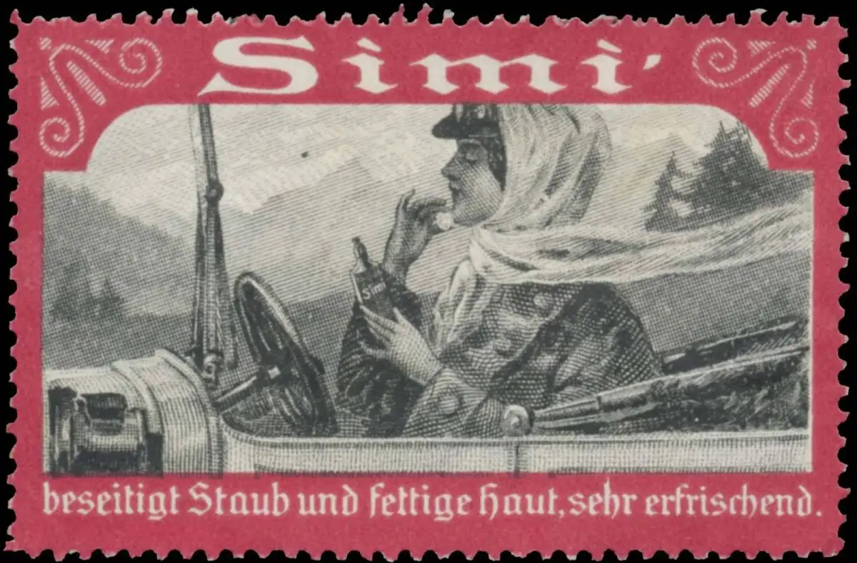 Simi beseitigt Staub und fettige Haut, sehr erfrischend. Auto, rot, Größe/Zustand: 4x6 , guter Zustand, Original alte Reklamemarke die seinerzeit für die Werbung benutzt wurde