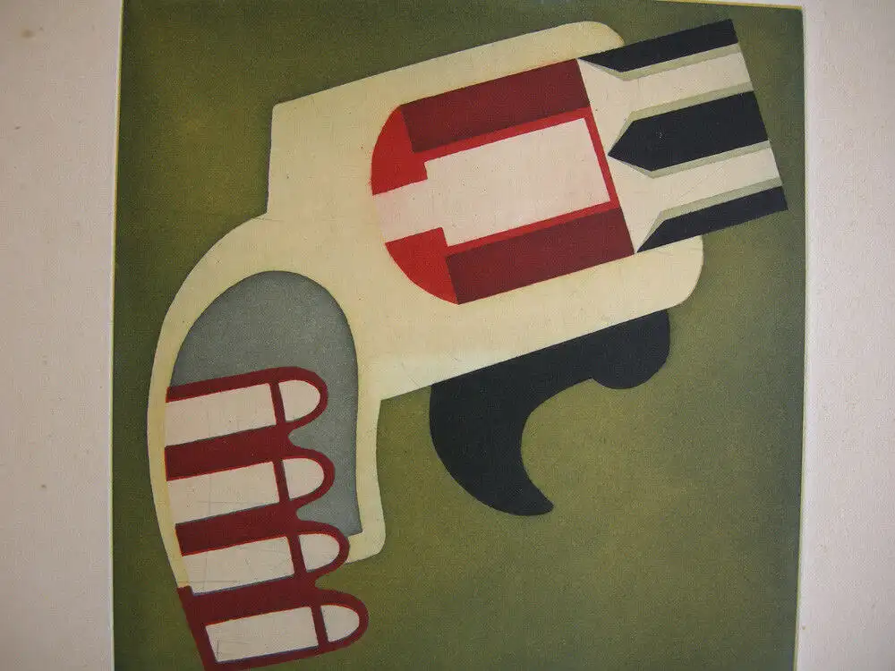 Simon Dittrich (1940) Pistole Orig Farbradierung 1970 signiert Probedruck