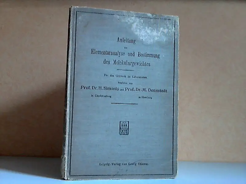 das Buch ist ein Dachbodenfund mit starken Gebrauchsspuren, gebräunt, stark fleckig, der Rücken ist teils kaputt aber keine losen Seiten, aus dem Inhalt: Organische Elementaranalyse: Qualitative organische Analyse - Quantitative organische Elementaranalyse. Vereinfachte Elementaranalyse - Verbrennungsapparat. Methoden zur Bestimmung des Molekulargewichtes: Chemische Methoden - Physikalische Methoden. Nachweis der Abbildungen und Bezugsquellen - Alphabetisches Namen- und Sachregister Beschreibung vom Antiquariat Ardelt 3c1b Antiquariat Ardelt