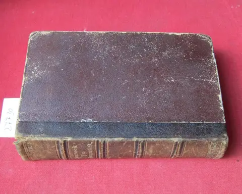 Einband beschabt, oberes Kapital mit Einriß, Besitzstempel auf Vorsatz, Block gelockert, durchgängig schwach fleckig.