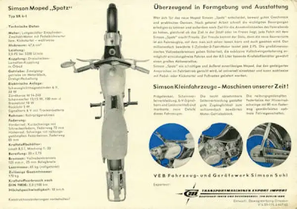 Simson Moped Spatz SR 4-1 Prospekt 1965