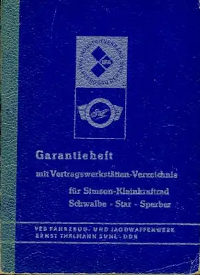 Simson Schwalbe Star Sperber Garantieheft 1970