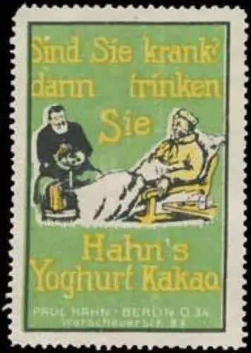 Dann trinken Sie Hahns Yoghurt Kakao, Größe/Zustand: 6x4 , guter Zustand, Original alte Reklamemarke die seinerzeit für die Werbung benutzt wurde