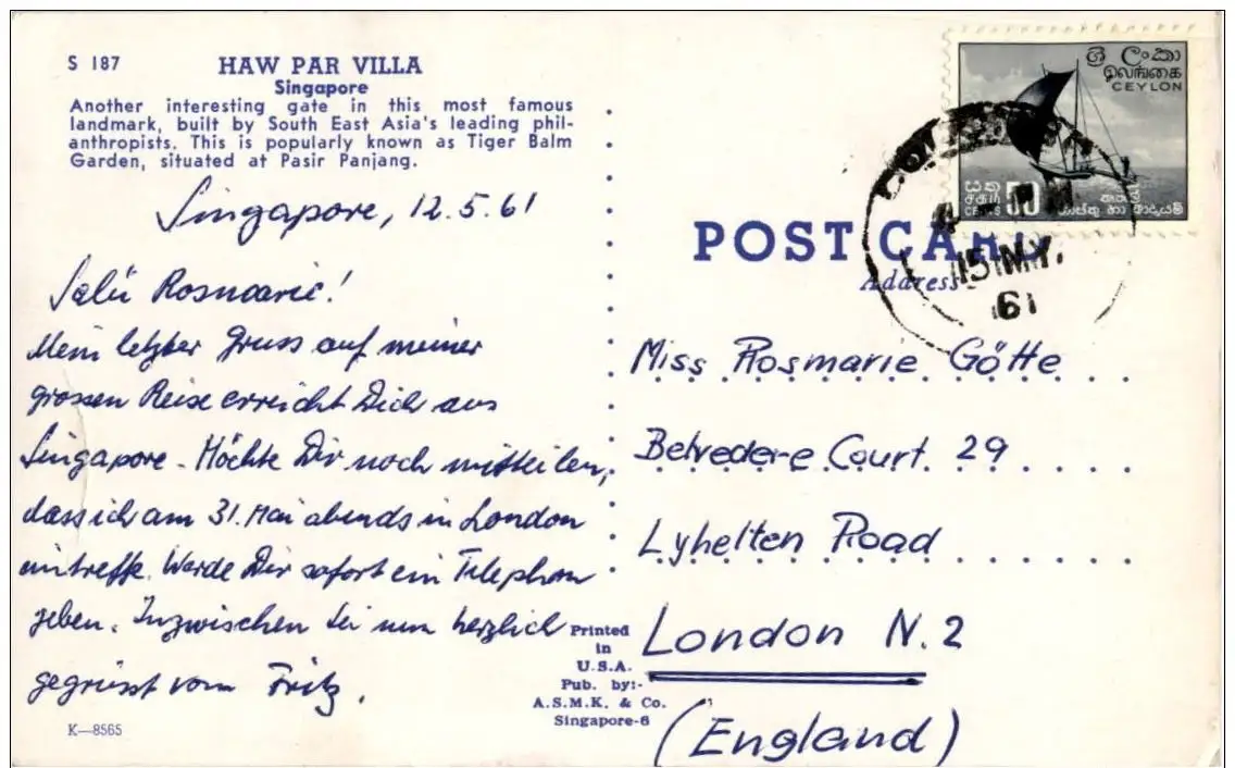 Ein Angebot in Ansichtskarten Singapur - 1.099 weitere Angebote in dieser Kategorie