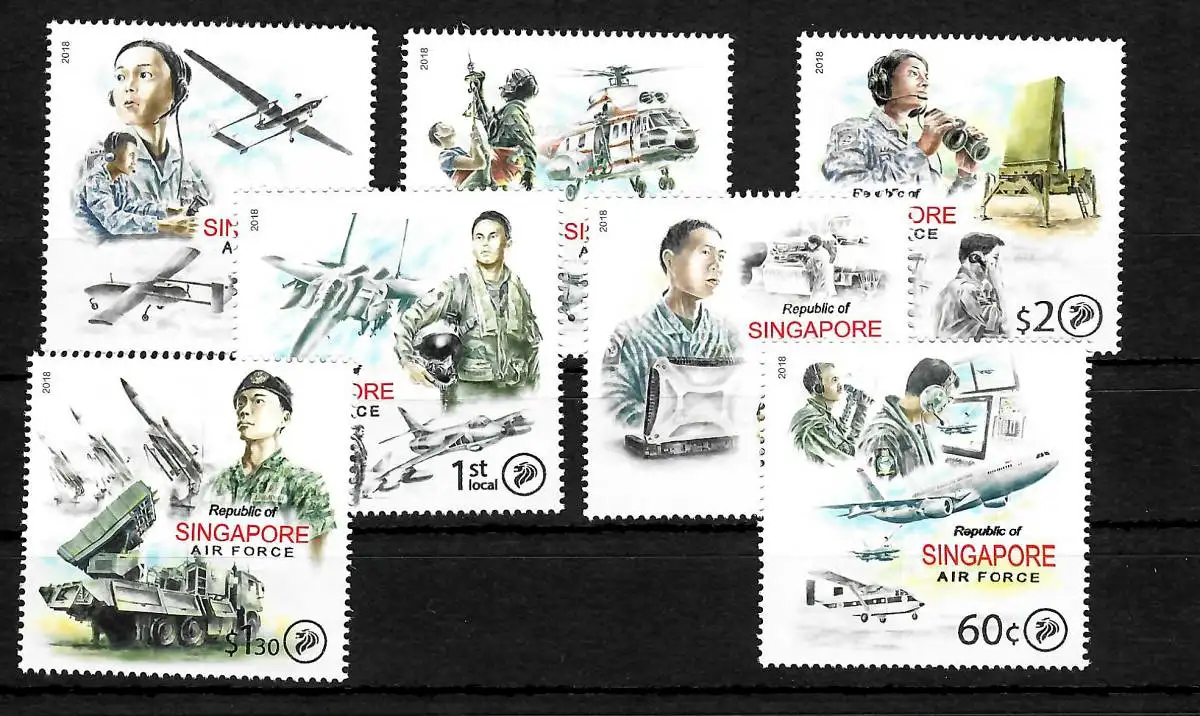 Singapore: Luftwaffe, 7 Briefmarken, Air Force, postfrisch