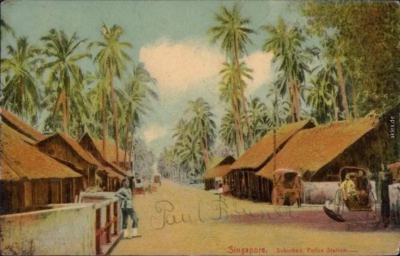Singapur Suburban, Police Station Singapore : 新加坡共和国 Postcard 1913
