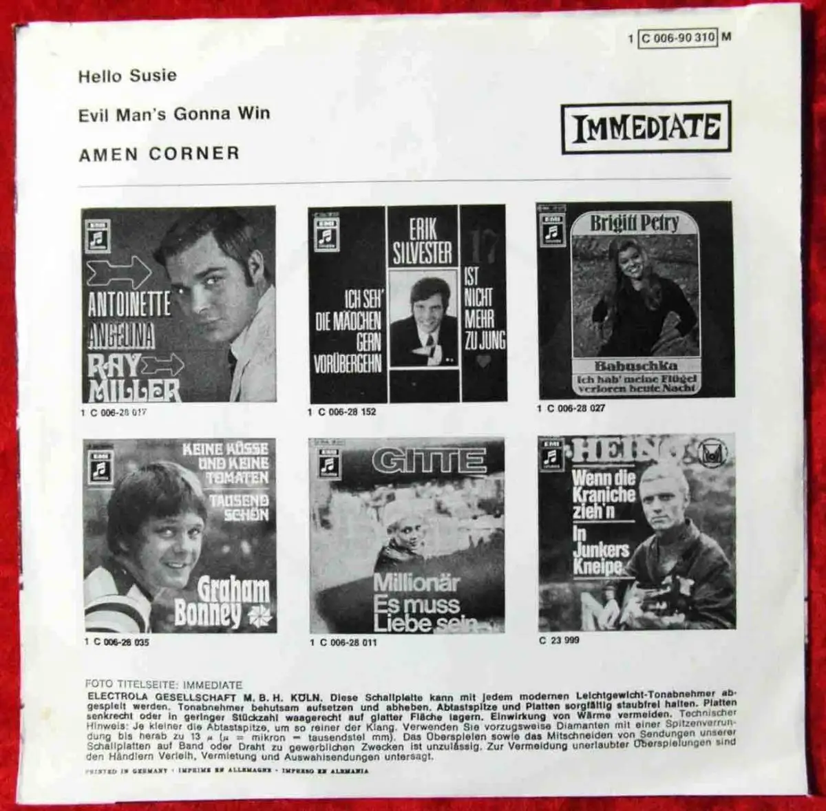 Single Amen Corner: Hello Susie (Immediate 1C 006-90 310) D