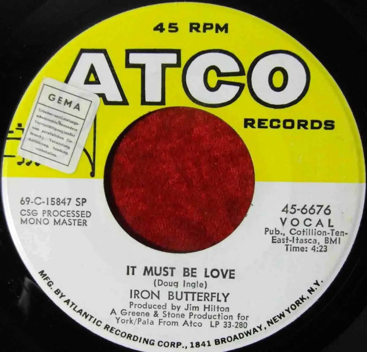 Originalsingle, Atco Records, US Pressung, im Firmenlochcover, 1969, Gema-Aufkleber