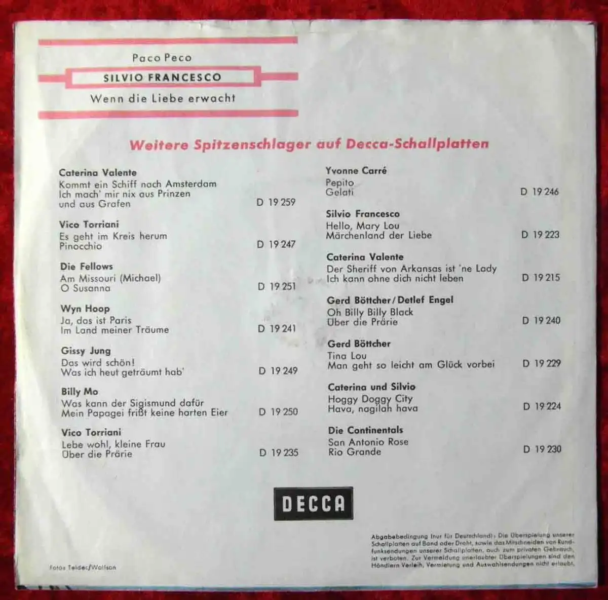 Single Silvio Francesco: Paco Peco (Decca D 19 261) D