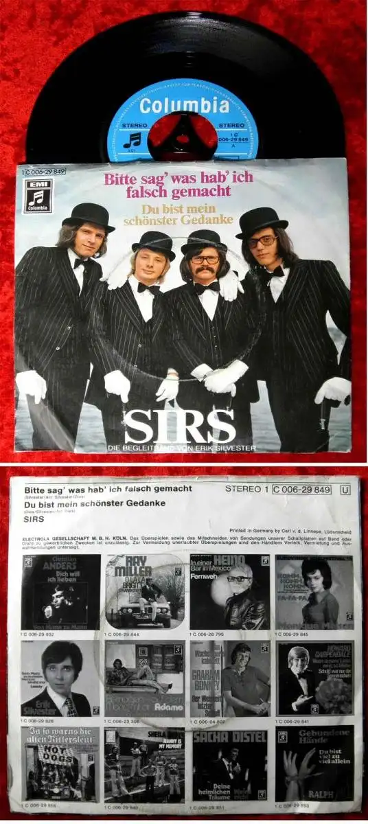 seltene Originalsingle, Columbia Records, dt. Pressung, Die Sirs waren die Begleitband von Erik Silvester