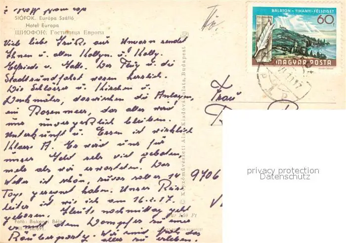 Siofok Hotel Europa Siofok postalisch gelaufen nach 1965 Erhaltung siehe scans [WerneD78] WernPID7
