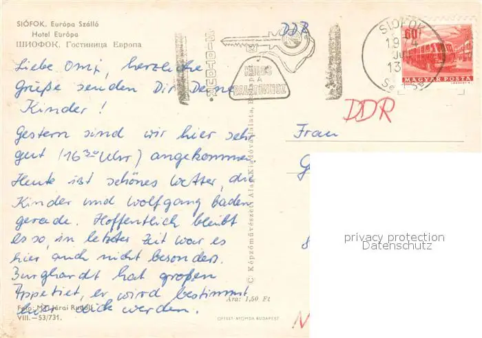 Siofok Hotel Europa Siofok postalisch gelaufen 1974 Erhaltung siehe scans [WerneD78] WernPID7