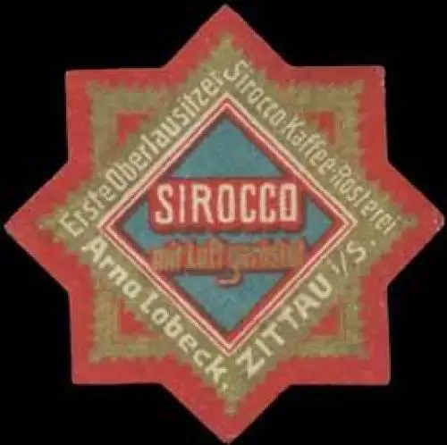 Erste Oberlausitzer Sirocco-Kaffee-Rösterei, Größe/Zustand: 4x4 , guter Zustand, Original alte Reklamemarke die seinerzeit für die Werbung benutzt wurde