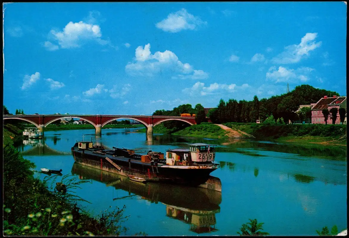 Sisak Sisak (Sziszek / Sisek) Panorama-Ansicht, Brücke Frachtschiff Fluss 1970